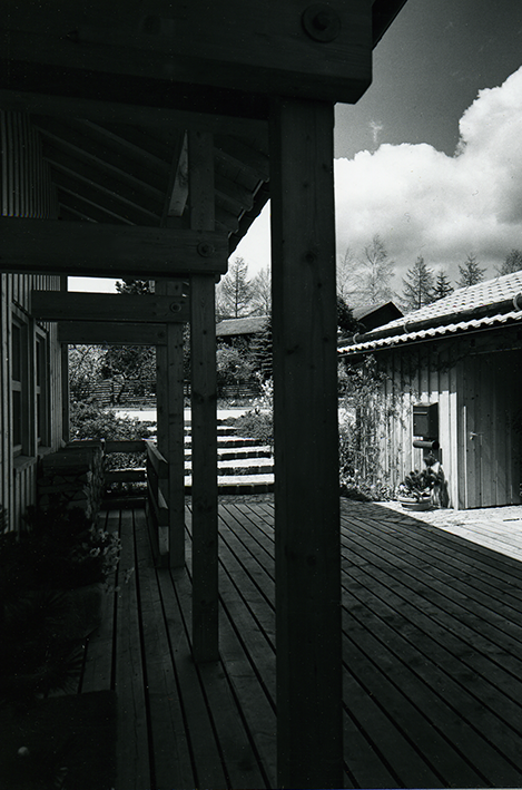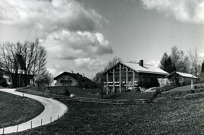 Der Blick vom Ortsrand in eine liebliche Voralpenlandschaft bestimmt die Disposition des Einfamilienhauses. Garage und Haus bilden einen intimen Innenhof. Eine Remineszenz an die Hauslandschaft sind Dachform, umlaufende Balkone und die Gestaltung der Außenhaut.