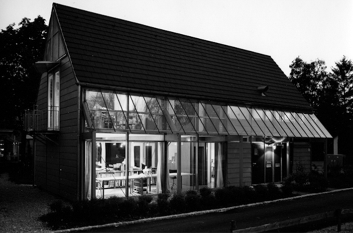Die Festsetzungen eines Bebauungsplans mit herkömmlichen Gebäudetypen E+D werden neu interpretiert und dem Dachgeschoß eine verbesserte Qualität verschafft. Der strukturierte Holzständerbau mit massiven Ausfachungen ist auch geeignet, unterschiedliche Nutzungen aufzunehmen. Zuschaltbare kleinere Einheiten machen die Nutzung flexibel.