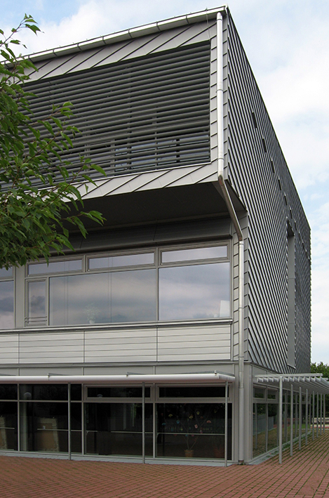 Eine Grundschule aus dem Jahr 1970 erfährt eine Erweiterung um 8 Klassen durch Aufstockung. Der Bestand wird generalsaniert und auf den neuesten technischen Stand gebracht. Die neue Gebäudehülle läßt das Gebäude ganzheitlich homogen erscheinen ohne die Aufstockung in seiner Neuartigkeit zu verleugnen.
