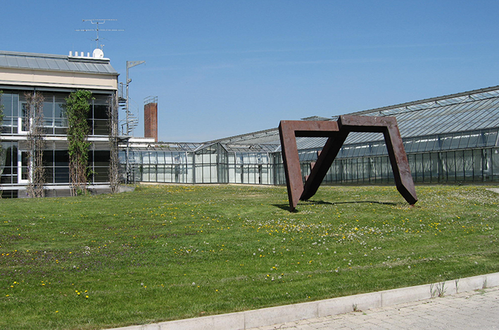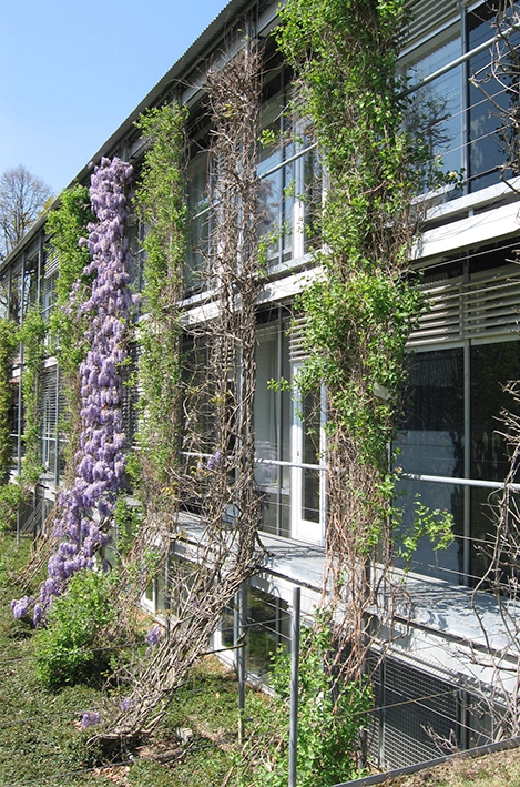 Das Institut gliedert sich in Laborbereich, Verwaltung, Gärtnerei, Lager und Gewächshäuser. Aufgabe war, die unterschiedlichen Anforderungen an das Gebäude in der Baukörperausformung sichtbar werden zu lassen.