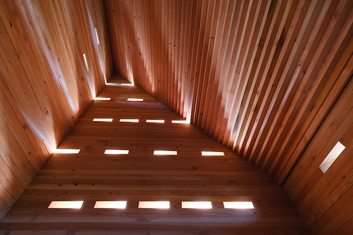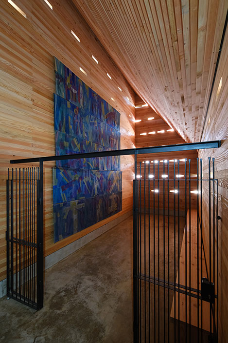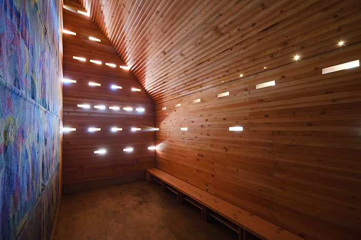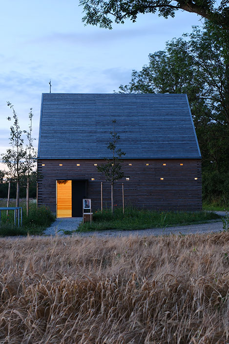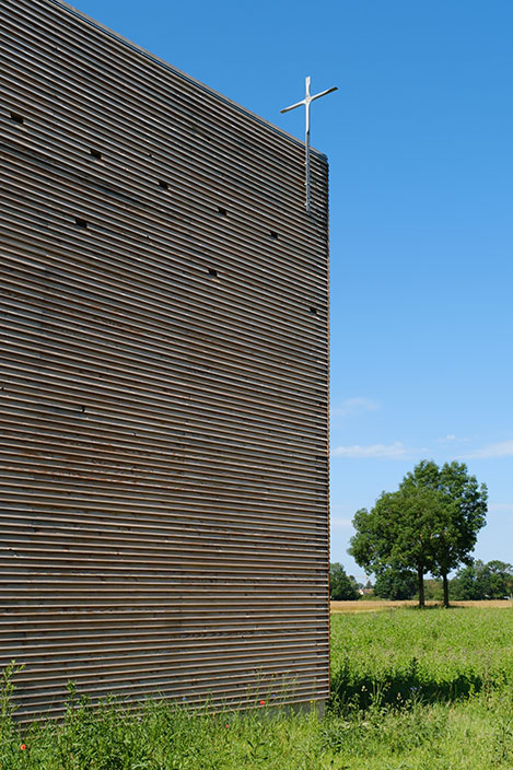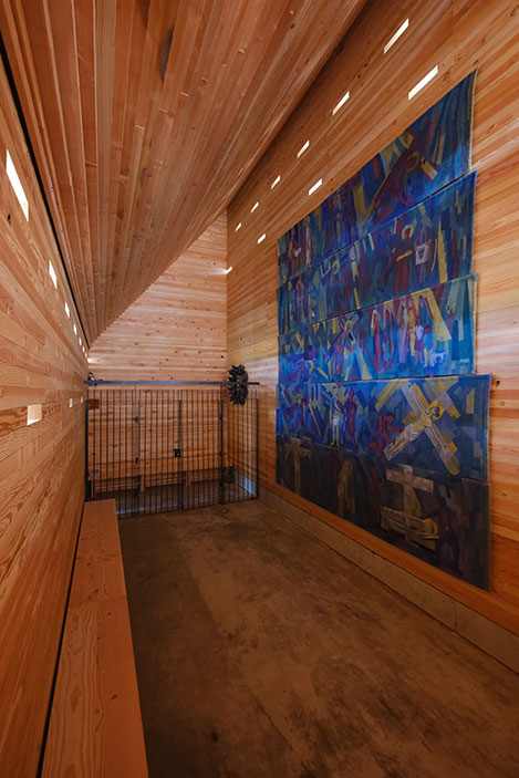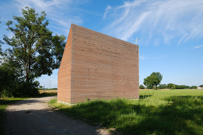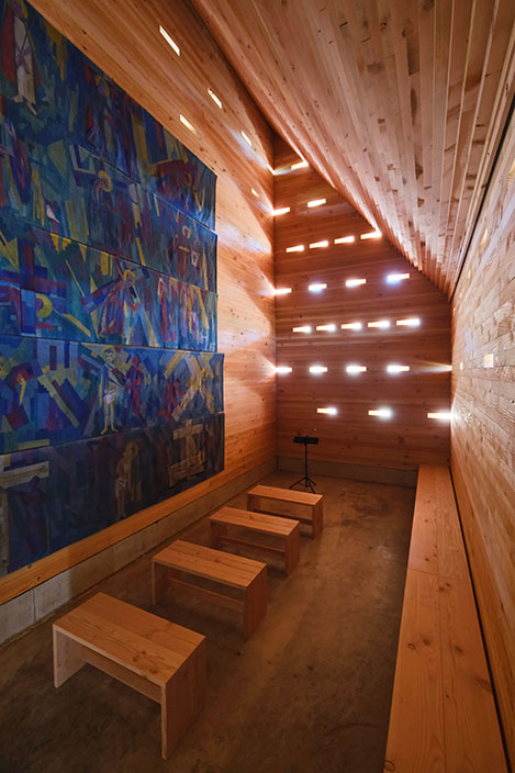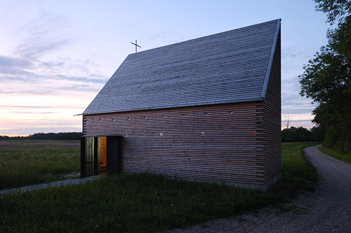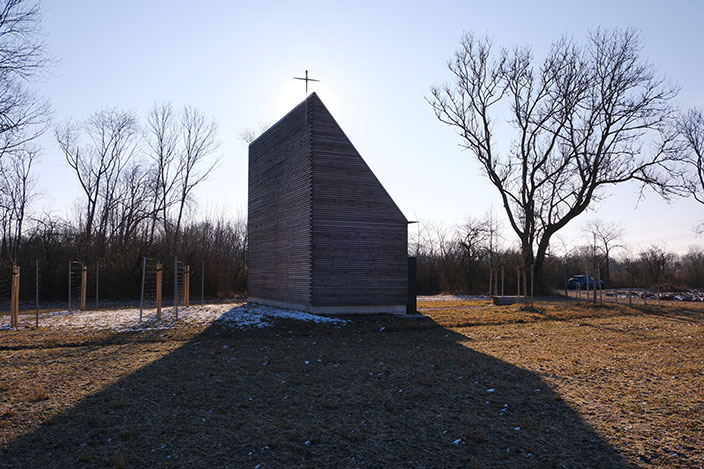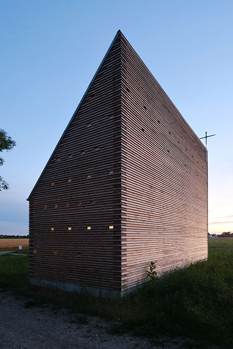 In einem langwierigen Genehmigungsverfahren über 3 Jahre wurde unter Einschaltung von zuständigen Ministerien der Bau 2023 genehmigt. Die Kapelle ist in ihrer Gesamtheit aus Douglasienholz gebaut, Wände und Dach sind aus dicken Holzbohlen gestapelt und verschraubt, sie sind gänzlich unbehandelt und naturbelassen. 51 kleine Lichtöffnungen tauchen die Kapelle in eine gedämpft mystische Stimmung und schützen Gobelins vor intensivem Licht. Die Kapelle steht am Rand der Isarauen und ist ein kleines Wahrzeichen außerhalb des Ortes. Für Fußgänger und Radfahrer kann die Kapelle ein Ort zum Verweilen und Innehalten sein.